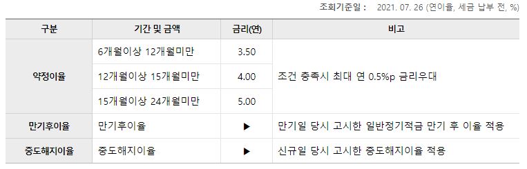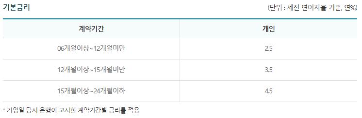 (단, 은행 요구조건 충족시 0.5% 추가 우대사항 있음)