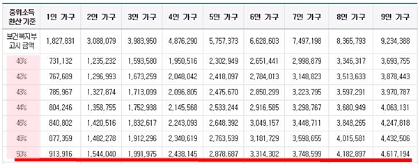기준 중위소득표를 아래에 첨부하니 참고 바랍니다.