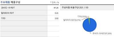1분기 매출 구성을 보면 현재 주력으로 밀고 있는 코로나19 신속진단키트(RDT)에서 대부분의 매출이 나왔네요.