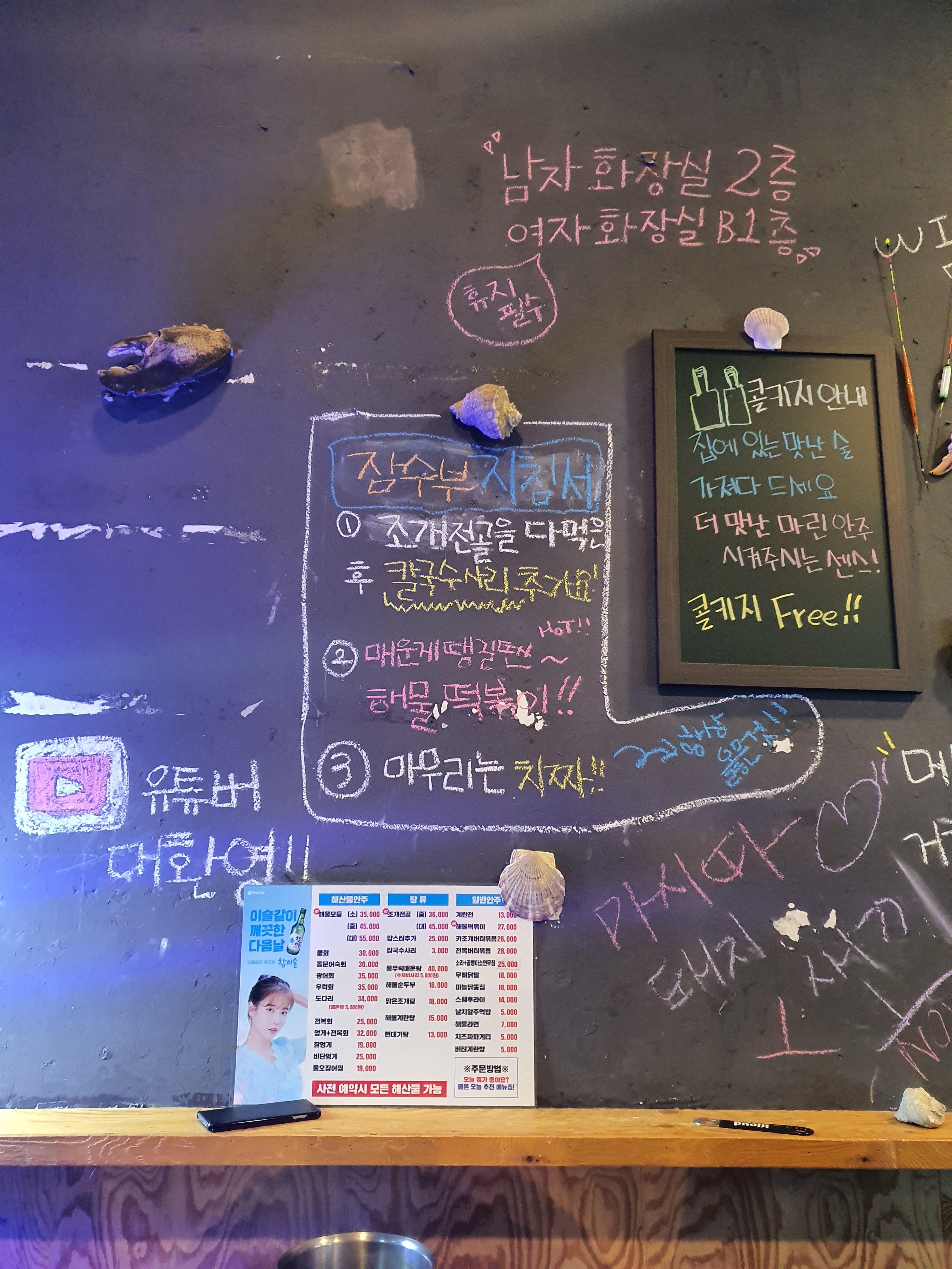이제 보니 물회, 광어회, 우럭회, 전복회 등등 회 종류도 참 많네요. 회도 먹어볼걸. 랍스터 추가도 되고... 닭발도 있고. 갑자기 메뉴판을 보니까 배가 고프네요.ㅠㅠ ㅎㅎ