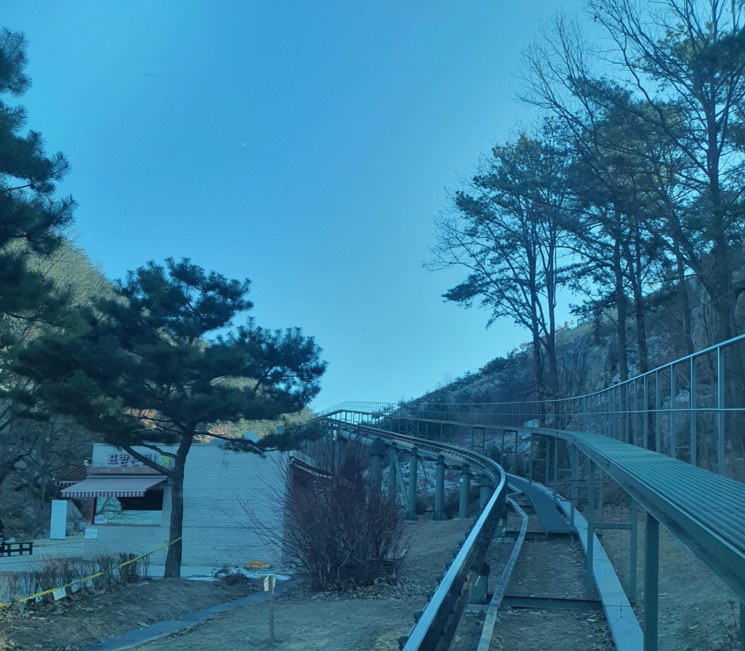 모노레일을 타고 올라가는 모습... 사람이 없어서 맨 앞자리를 차지했습니다. 사실 뒤에 아무데나 앉으려 했더니 직원분께서 맨 앞에 앉으라 하심ㅋㅋ