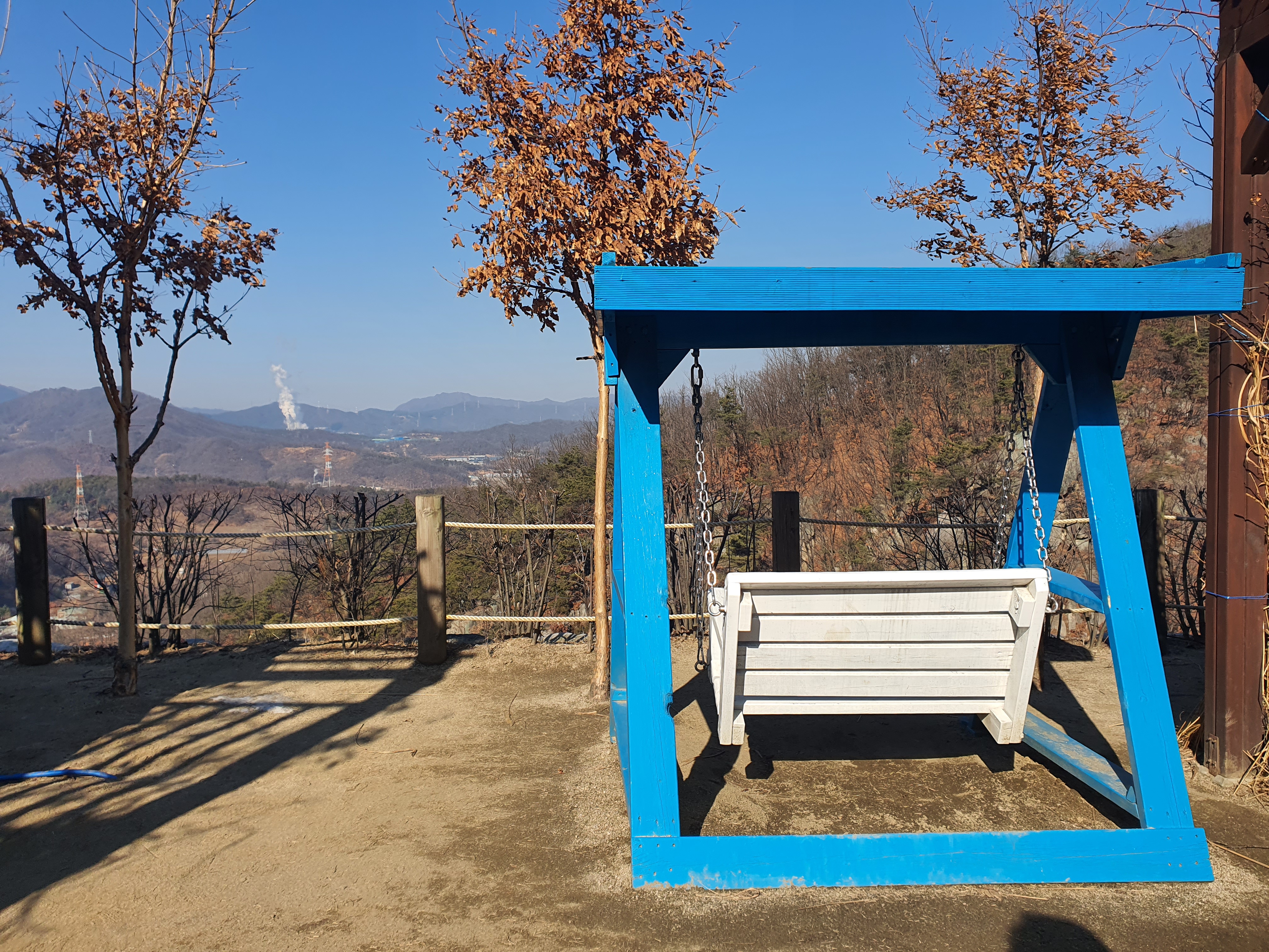 이건 색이 너무 예뻐서 찍어봤습니다. 겨울이라 칙칙한데 혼자 포카리스웨트 같은 색상을 뽐내던 그네의자.