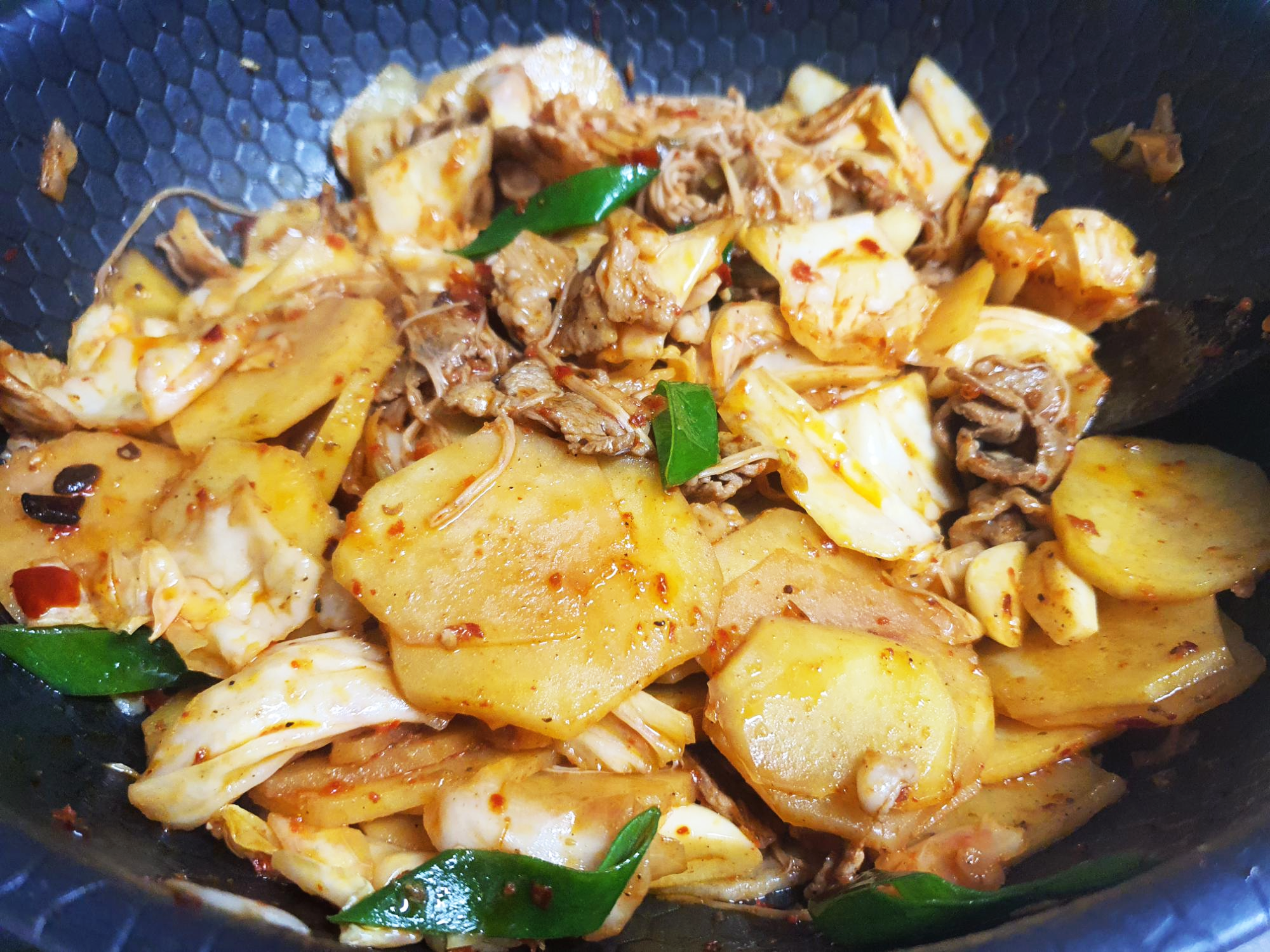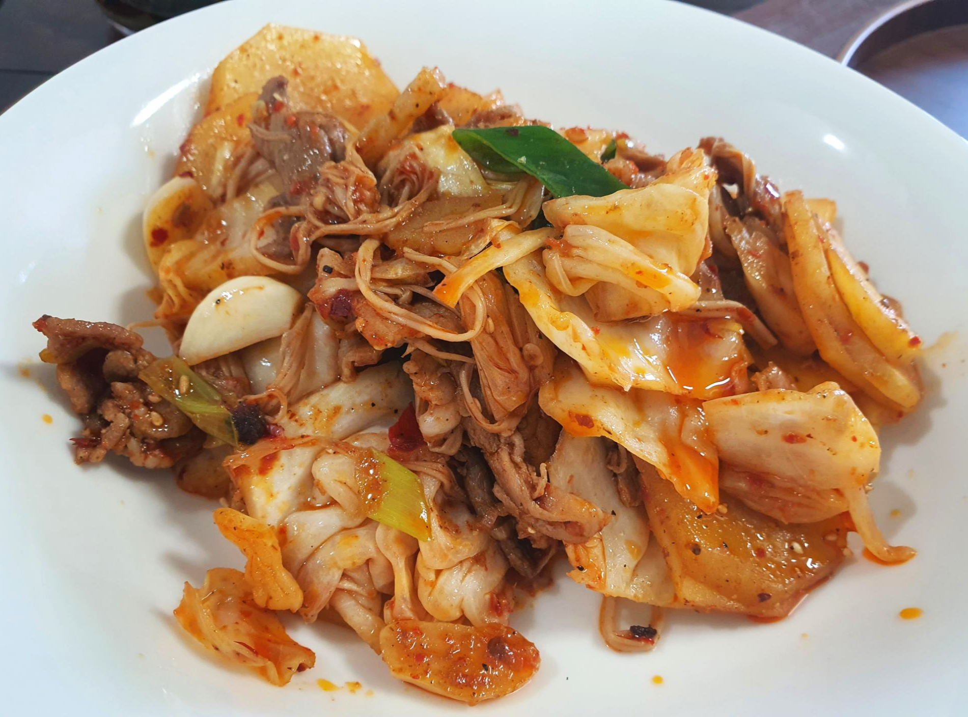 제육볶음 같은 맛이 나려나 했는데 그렇지는 않았구요. 다소 느끼할 수 있는 돼지고기의 맛을 얼얼한 마라가 잡아줘서 질리지 않고 먹을 수 있는 맛이었답니다.