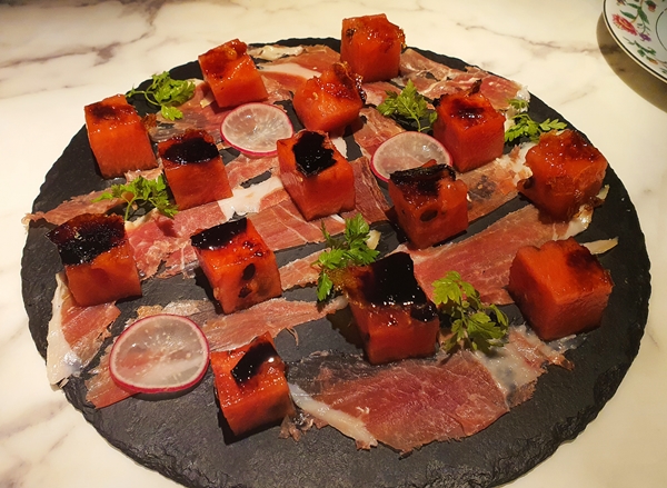 안주로 나온 수박 하몽입니다.