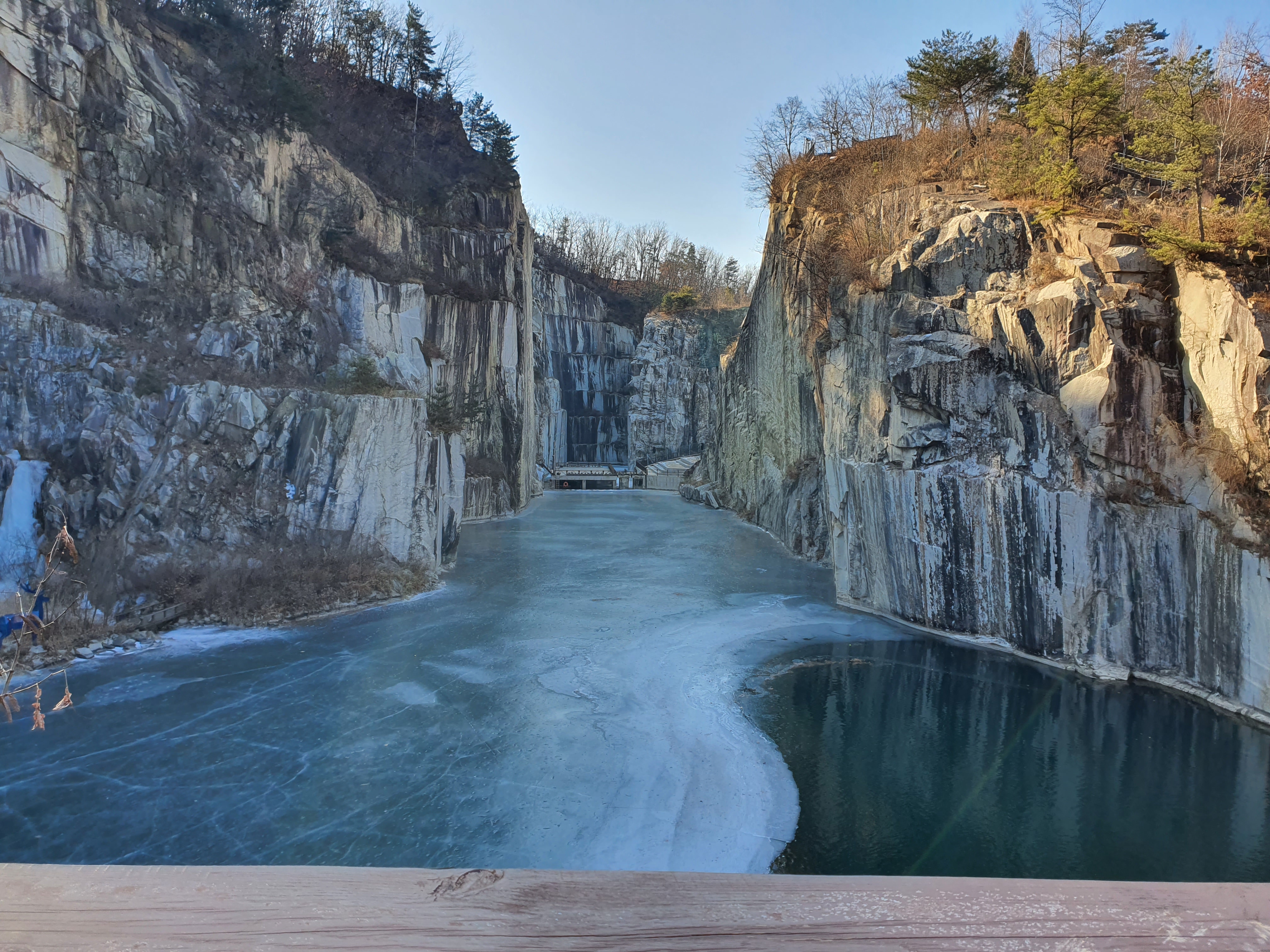 좀 더 가까이 다가가보니 물이 얼어있었습니다. 어쨌거나 멋있군... 화강암의 단면이 아주 멋져요 여기가 포천 아트밸리의 가장 유명한 스팟이었던 것 같아요.