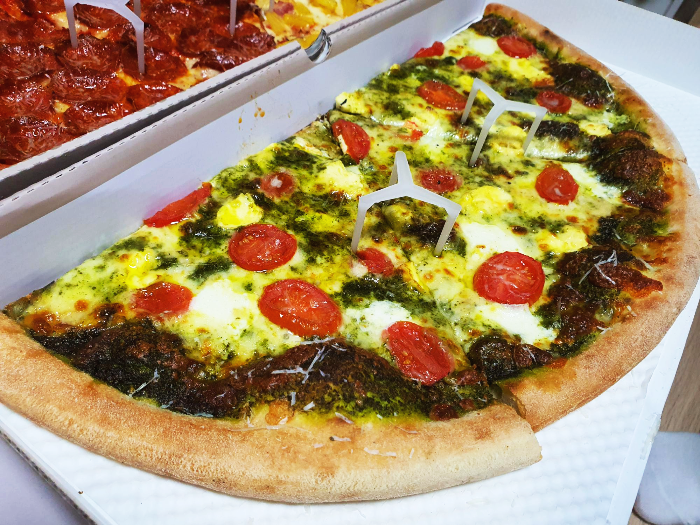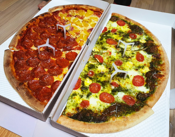 바질 그리너리 3조각(개당 6700원), 페퍼로니 플래닛 2조각(개당 6300원), 하와이안 선셋 1조각(개당 6000원) 총 6조각을 시켰고, 사진에는 없지만 사이드로 트러플 감자튀김(5800원) 하나를 추가로 시켰습니다.