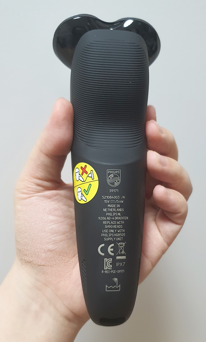 필립스 전기 면도기 s9171은 손 작은 제게도 한 손에 잡힐만큼 굉장히 컴팩트한 크기였어요.