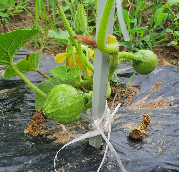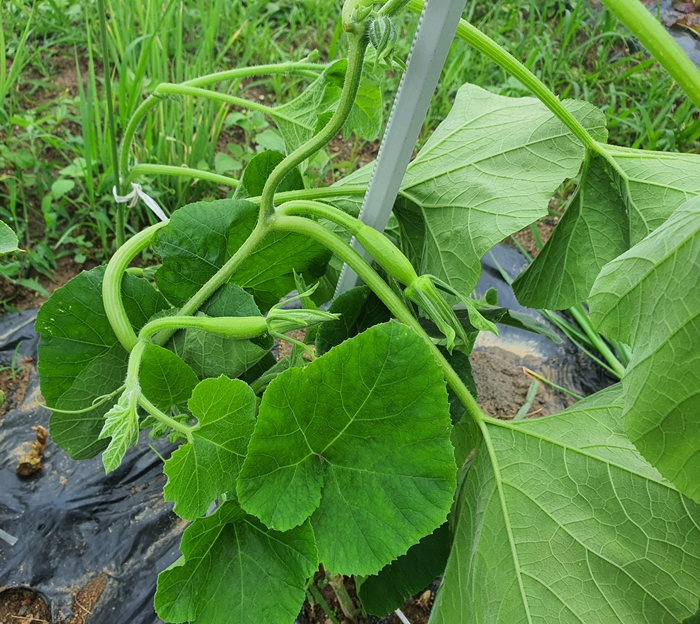순지르기를 해주지 않으면 무럭무럭 자라는 호박 줄기가 텃밭을 뒤덮어 버릴지도 모르니까요.