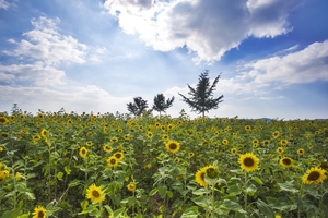 학원농장은 청보리밭의 풍경이 매우 아름다운 곳으로, 8월에는 노란 해바라기가 농장을 가득 메워 아름다운 풍경을 자아냅니다.