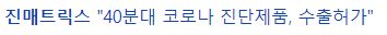 진매트릭스는 40분대로 코로나 진단이 가능한 신속 진단키트로 식품의약품 안전처로부터 수출 허가를 받았으며, 유럽 CE 의료기기 인증을 획득하였습니다. 또한 델타 바이러스 등 여러 변이 바이러스 검출이 가능하다고 하는데요.