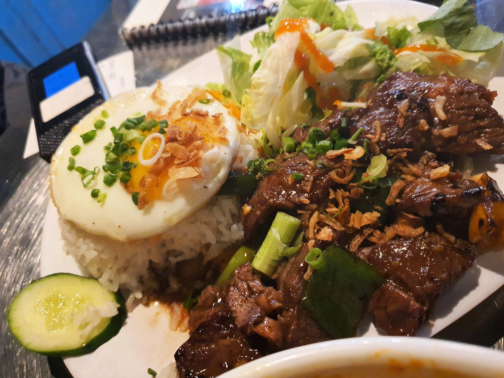 스테이크는 조금 질긴 편이지만 양념이 너무 맛있고 위에 뿌려진 갈릭 후레이크와 찰떡궁합입니다.