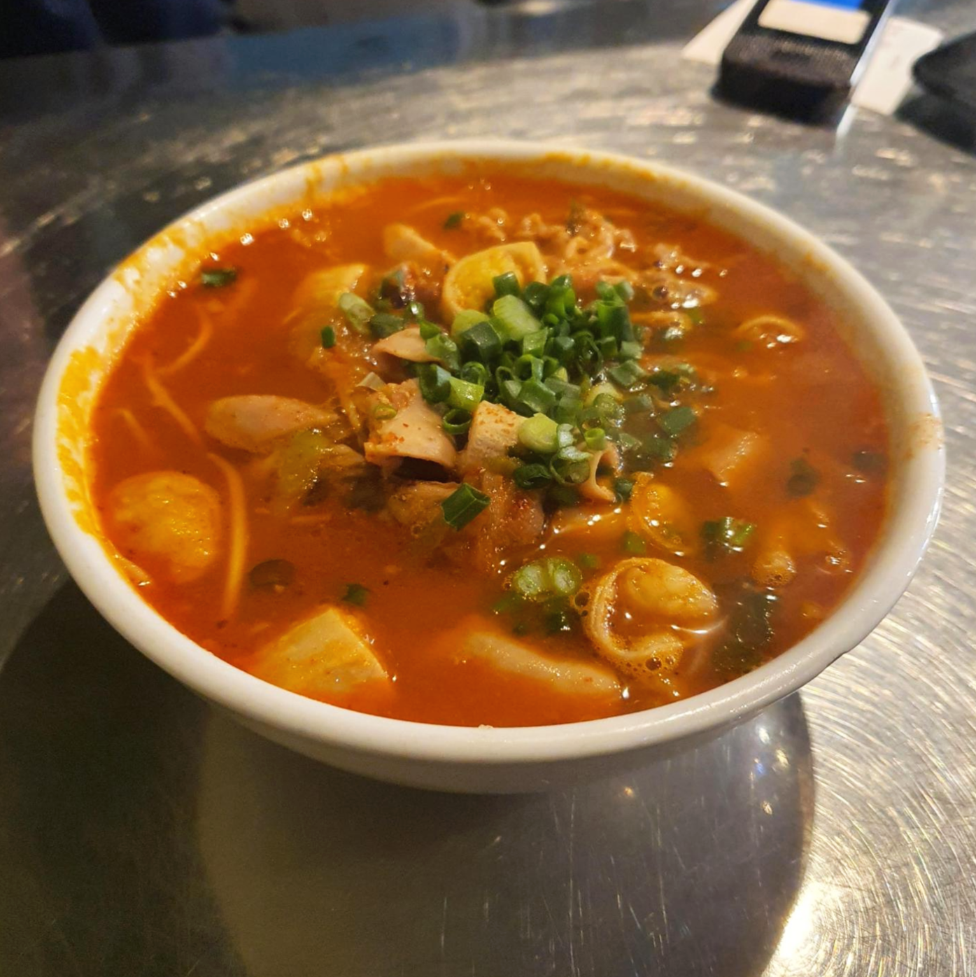 우선 느끼하지 않아요. 국물 색상만 봐도 아시겠지만 약간의 매콤함이 있어서 느끼함을 잡아줘요.